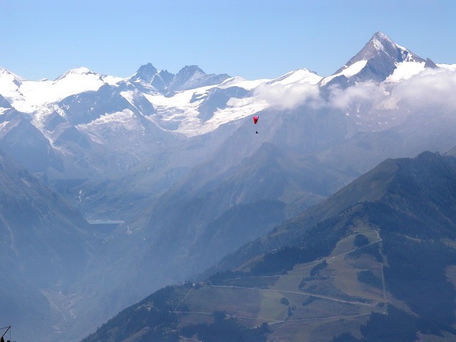 Gleitschirmflieger, links die Stauseen von Kaprun (12.02) |
