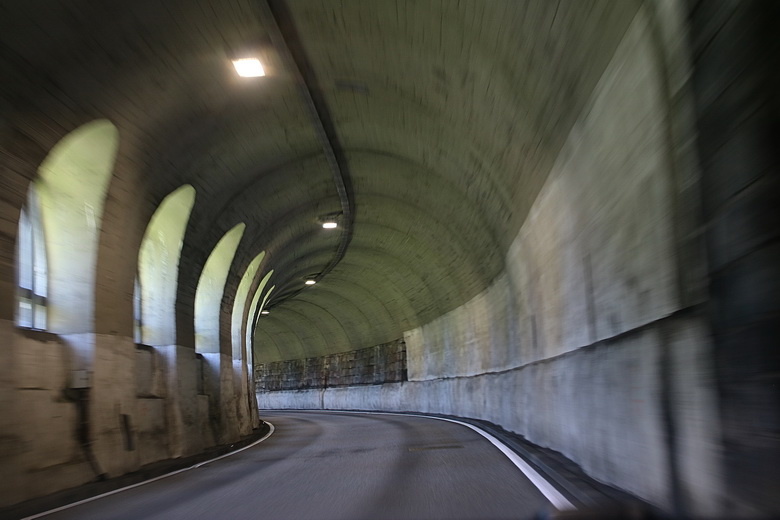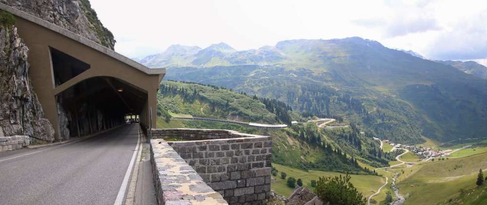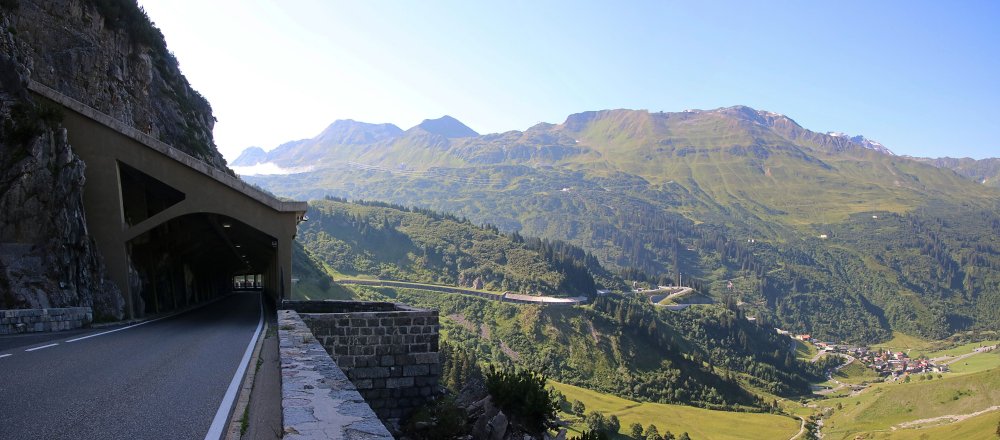 Südrampe, bei einem kleinen Parkplatz zwischen zwei Teilen der Flexengalerie (16.59) |