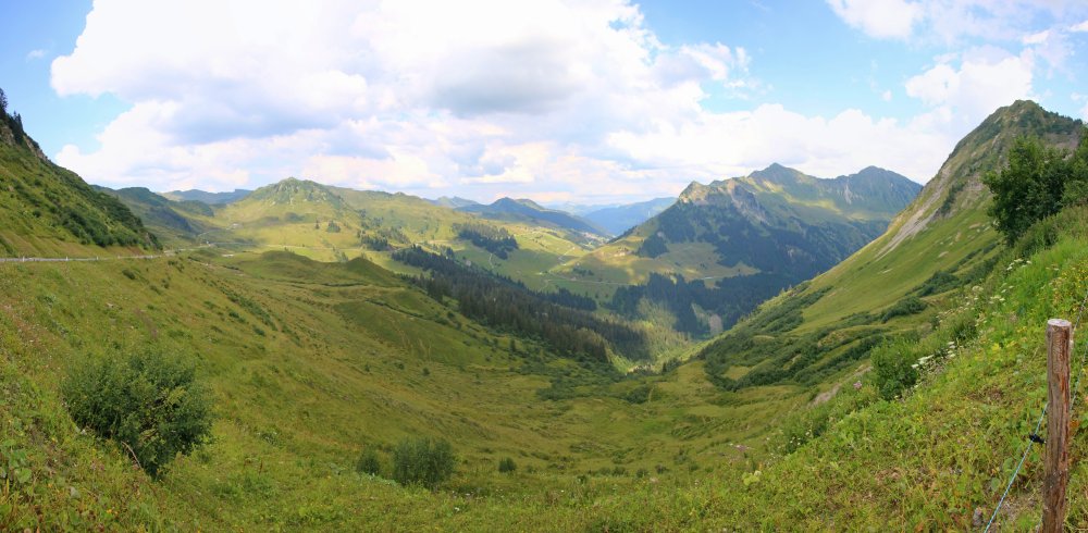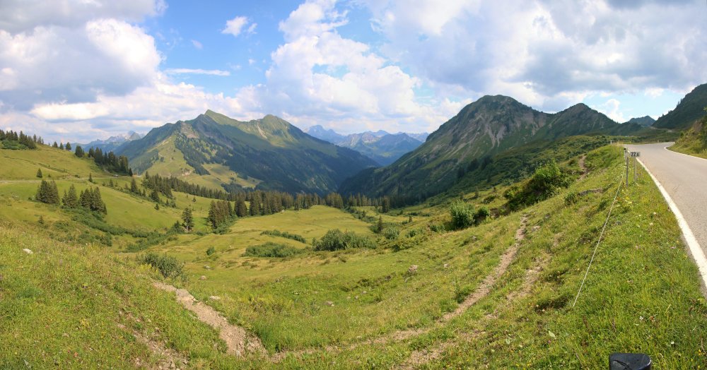 von der Ostrampe in Richtung Damüls (links) und zum Pass (rechts) (27.07.2018) |