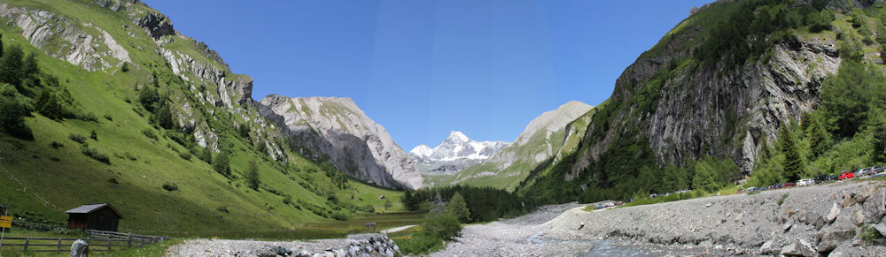 einer Stelle der Straße aus den Großglockner schön sehen. Rund einen Kilometer nach Kals in