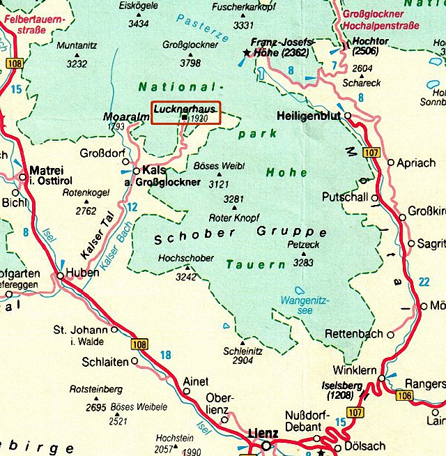 Huben die Felbertauernstraße. 12 km nach diesem Abzweig erreicht man