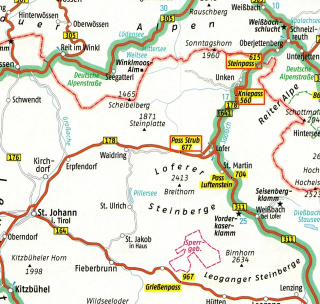 Der Pass Strub zwischen Waidring und Lofer, an der Landesgrenze