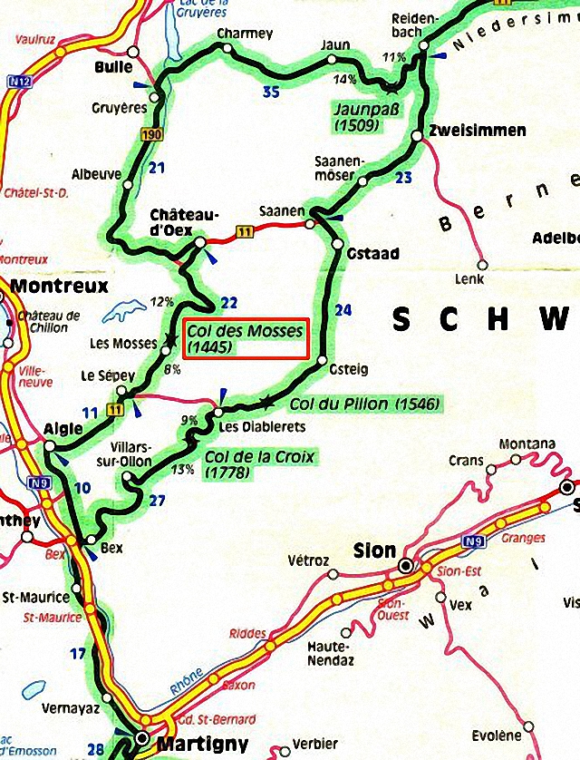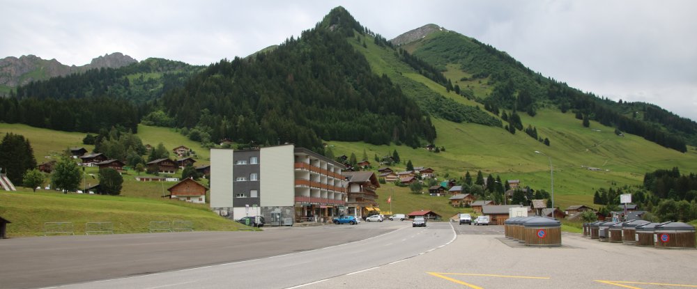(894 m) beim Abzweig nach Château-d'Oex. Wir sind vom Col du Pillon kommend beim