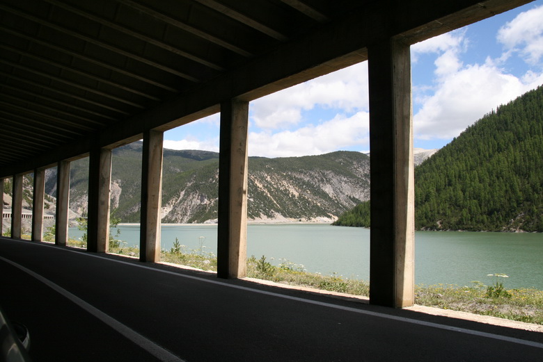 Am Lago di Livigno, zwischen Staumauer und Tunnel (15.07.2011)