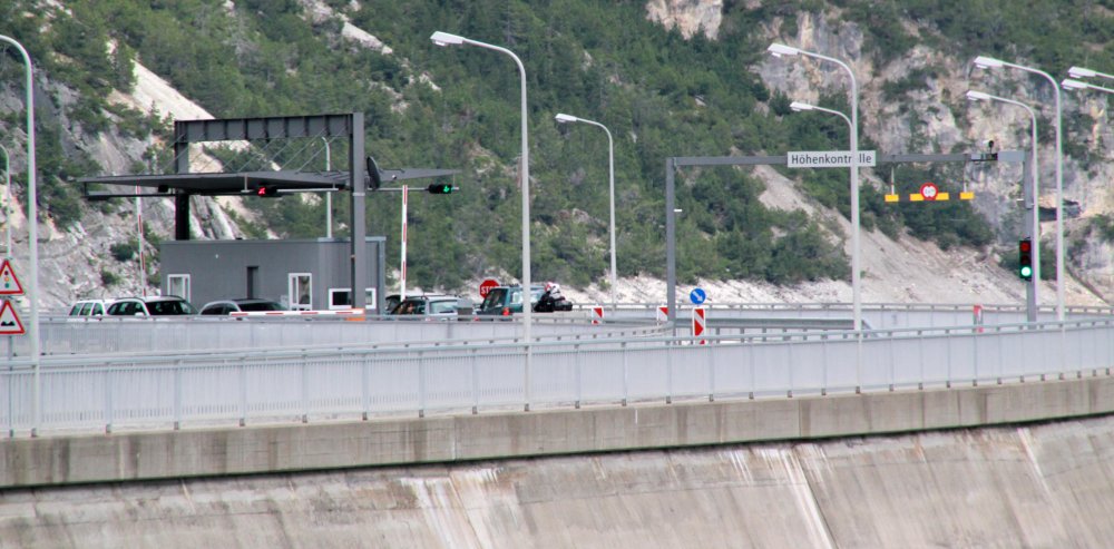 Tunnel-Mautstelle auf der Staumauer (16.07.2011)